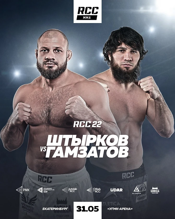 Кард турнира RCC 22: Шлеменко vs Белаз пополняется еще одним громким противостоянием. Иван Штырков выйдет в октагон против Шамиля Гамзатова – это будет соглавное событие шоу. Турнир состоится 31 мая в Екатеринбурге на 12-тысячной УГМК-Арене.