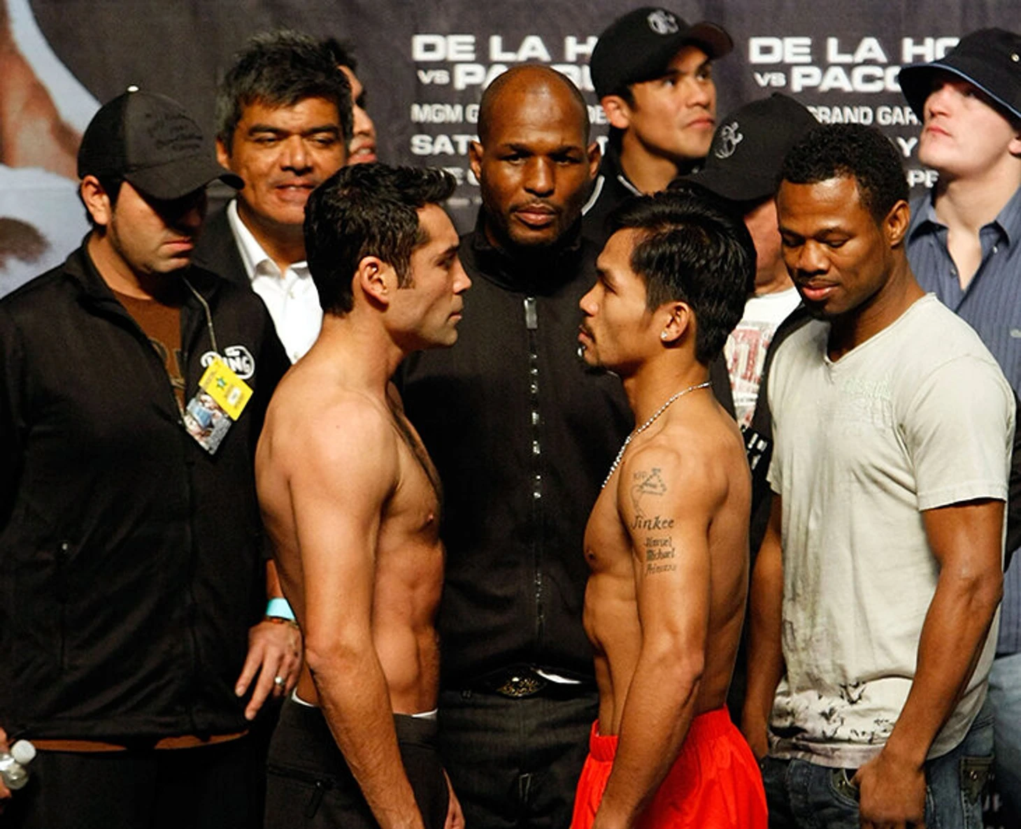 Изначально идея их боя выглядела как безумство: Пакьяо только поднялся в легкий вес до 61,2 кг, как сразу получил крупного Де Ла Хойю в 66,7 кг. Причем ранее Де Ла Хойя выступал в первом среднем (до 69,9 кг) и среднем весах (до 72,6 кг), а разница в габаритах поражала: 14 см – в росте, 15 – в размахе рук.