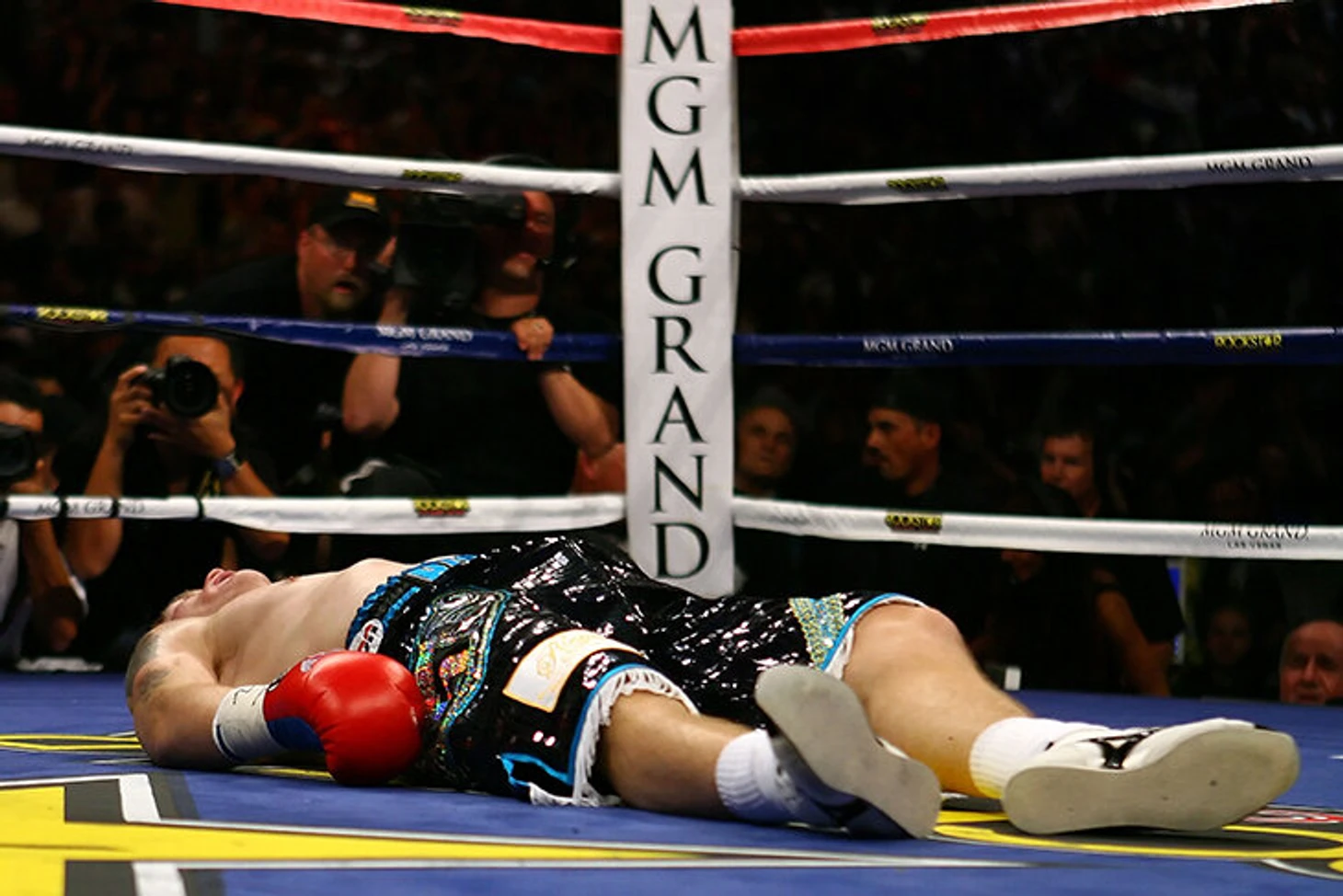 9. Уже через год случился крах: сначала Пакьяо засудили в бою с Тимоти Брэдли, которого перебил почти на 100 точных ударов, а затем улетел в тяжелейший нокаут от Маркеса в квадрологии. Лежащий без сознания Пакьяо – олицетворение конца.