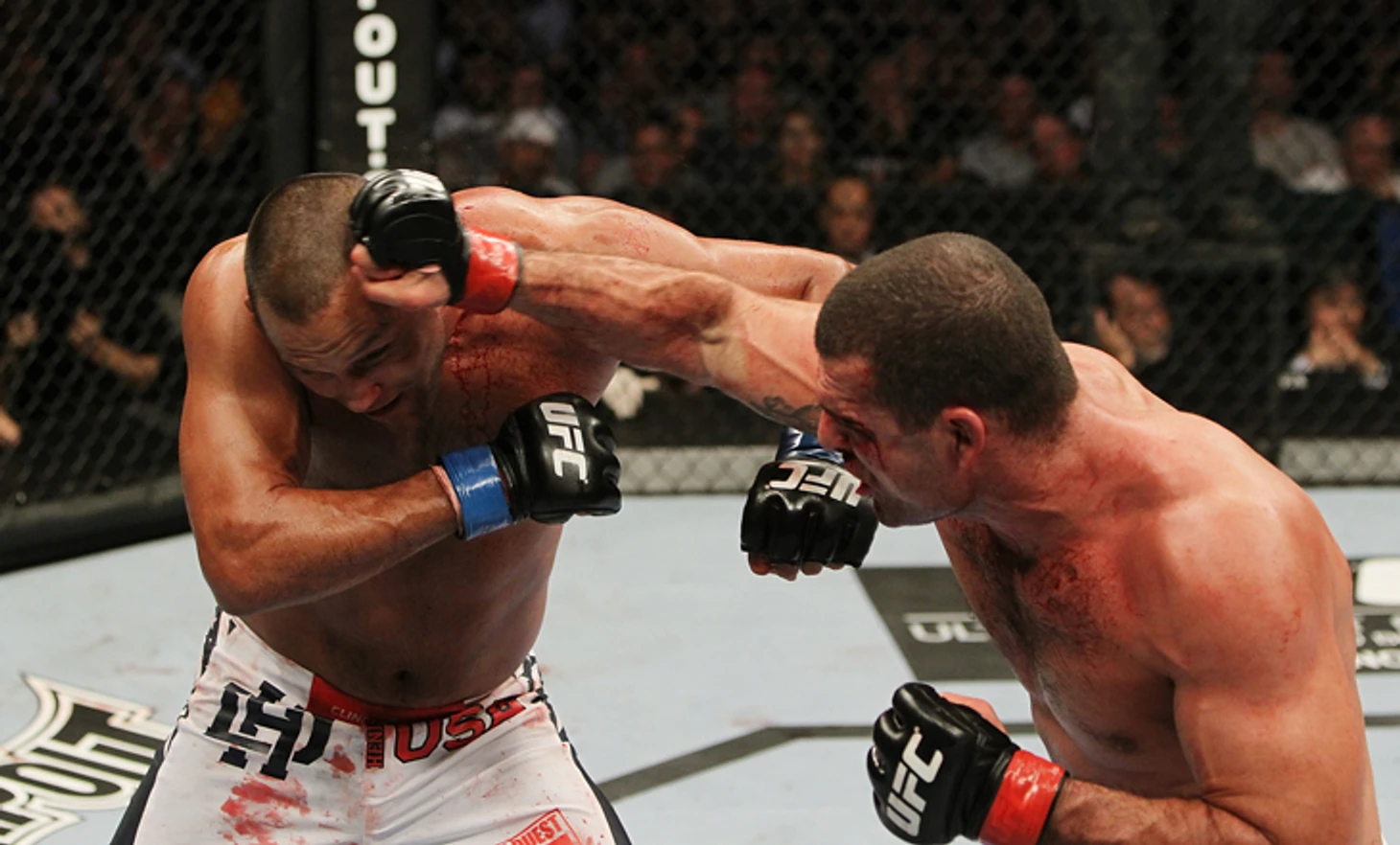 Еще один бой из зала славы UFC. Для Хендерсона этот бой стал первым после возвращения в UFC. «Хэндо» был на подъеме. В прошлом поединке он отправил в нокаут Федора Емельяненко. Для «Шогуна» напротив – настали трудные времена. Совсем недавно он потерпел тяжелейшее поражение от Джона Джонса, лишившись титула. Просто поразительно, каким контрастным получился бой. В первых трех раундах доминировал Хендерсон. В оставшихся двух Руа перехватил инициативу и едва не нокаутировал своего соперника. Но преимущество, добытое Хендерсоном в первой половине боя, оказалось более весомым. Хотя наиболее справедливым исходом была бы ничья, судьи отдали победу «Хендо».