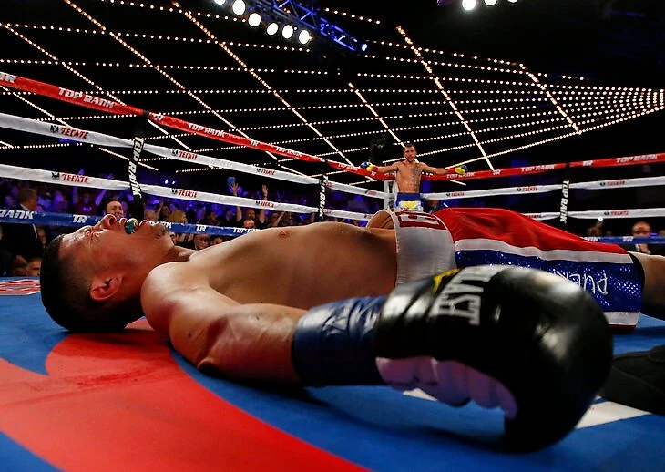 Через год Ломаченко вернул титул чемпиона мира, не оставив шансов Джорджу Камбососу. В отличие от крупного Хейни, 36-летний Ломаченко оформил нокаут. Фото помятого Ломаченко – обманчиво: тогда он доминировал. Но в то же время показывает, что чемпион стал гораздо уязвимее.