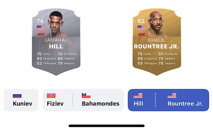 По данным Stats Fight Rating, бойцовский уровень Раунтри выше, чем у Хилла. Навыки Халила наделены рейтингом 82. Джамал отстает в этом компоненте от своего соотечественника на восемь пунктов.