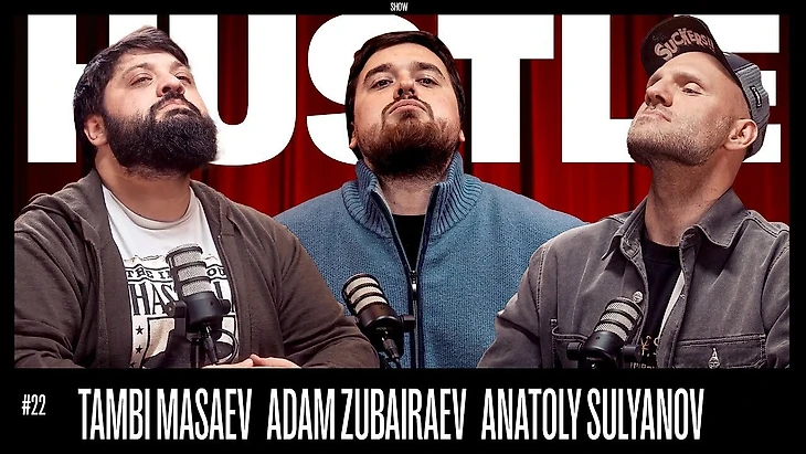Сульянов прорекламировал бренд в подкасте Hustle Show: на обложке выпуска похвастался челюстью с ведущими Тамби Масаевым и Адамом Зубайраевым.