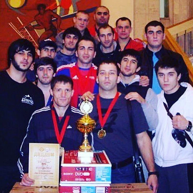 Гаджиев – в центре, слева от него – Николай Елесин, справа – Бату Хасиков