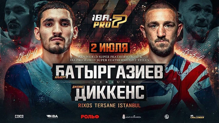 Олимпийский чемпион-2020 россиянин Альберт Батыргазиев (12-0, КО 8) 2 июля в Стамбуле на турнире «БЕТСИТИ. IBA.PRO 7» в 12-раундовом поединке проведёт защиты титула IBA.PRO и временного пояса WBA во втором полулёгком весе против опытного британца Джеймса Диккенса (35-5, КО 14).