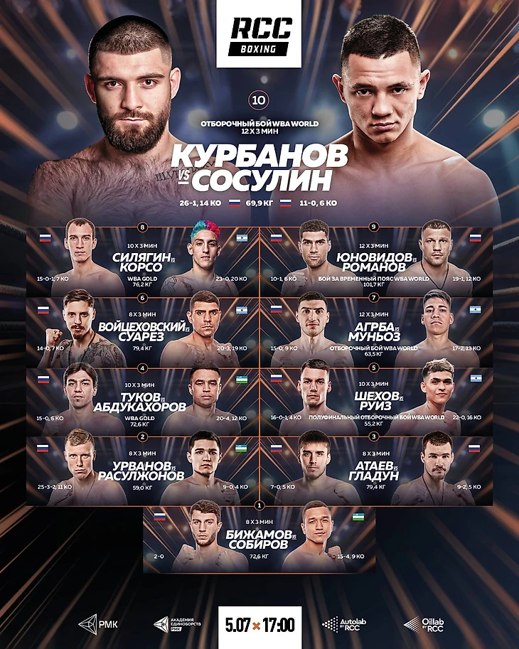 RCC Boxing: Курбанов vs Сосулин, Юновидов vs Романов. Полный кард, где смотреть?