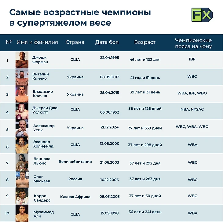 10 самых возрастных чемпионов в истории супертяжелого веса