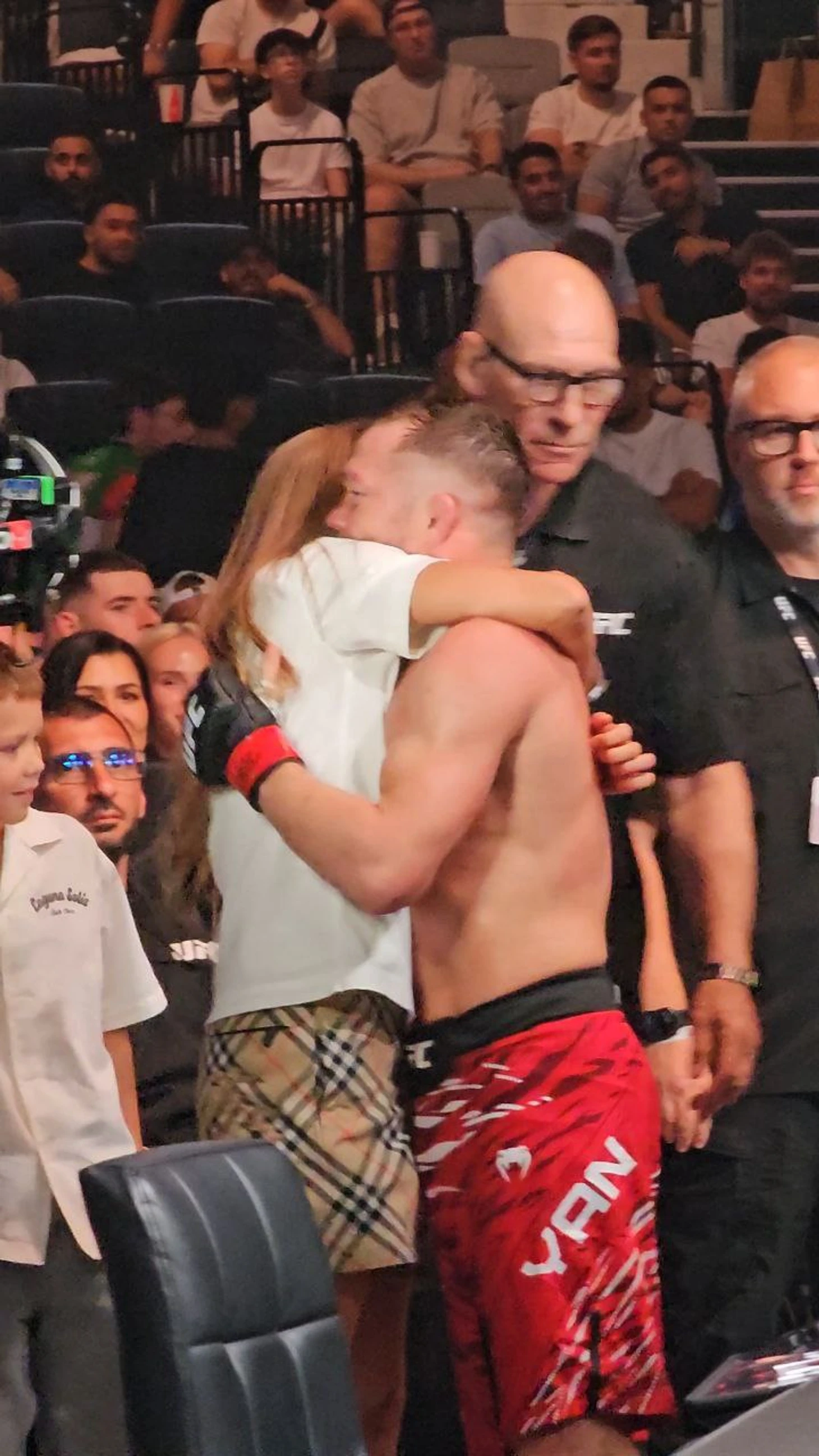 Выиграл третий бой подряд (и это после трех поражений) и отпраздновал победу в клетке вместе с сыновьями.