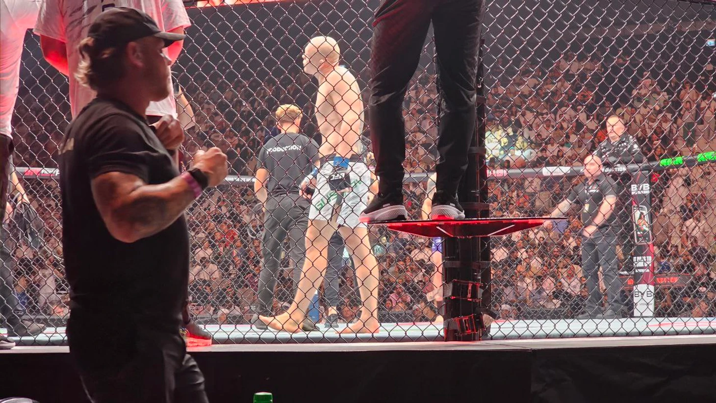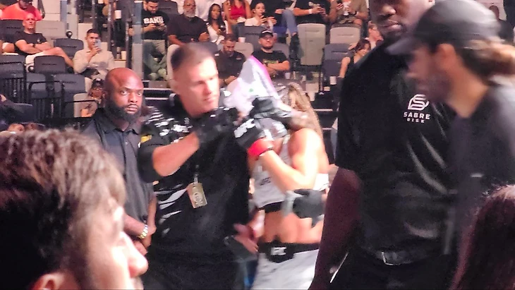 Баррио снова зажал соперника у сетки, а Шара Буллет искал моменты в тайском клинче и выдал неплохую концовку