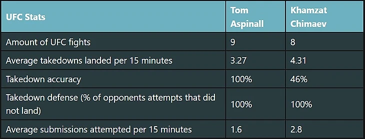 На фоне доминирования Чимаева часто вспоминают и Тома Аспиналла — чемпиона тяжелого веса, который тоже демонстрирует невероятную эффективность в октагоне.