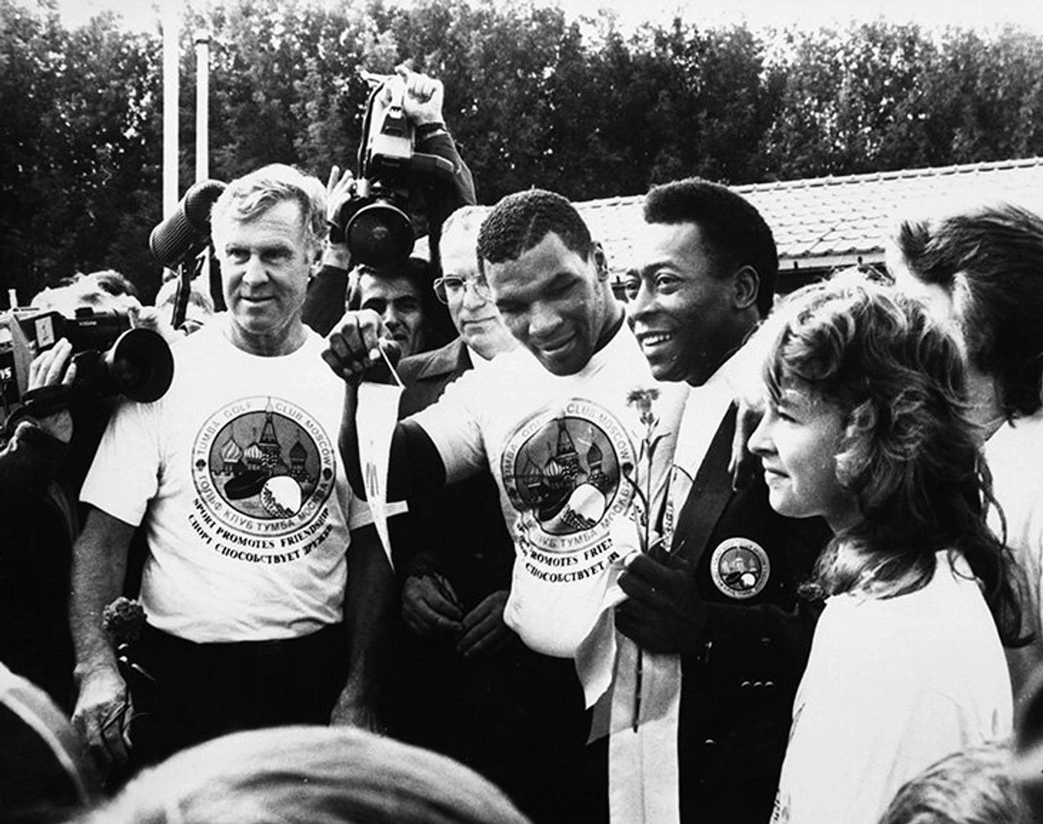 Тайсон погулял по Красной площади, увидел Мавзолей и не восхитился местной едой – не понравилась черная икра. А еще попал на открытие первого в стране гольф-клуба, где нанес символический удар вместе с легендой футбола Пеле.