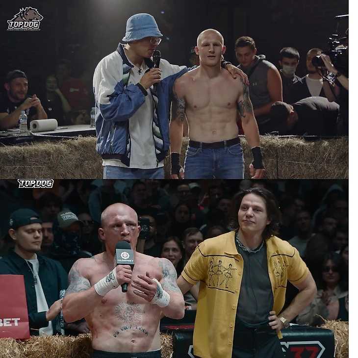 Top Dog существовал всего полгода и выглядел подпольной тусовкой: вокруг сена стояли редкие люди, а глава лиги Данил «Регбист» в тишине неловко объявлял бойцов. Мельников тоже нервничал – когда представлялся на видео, тяжело вздыхал и моргал.