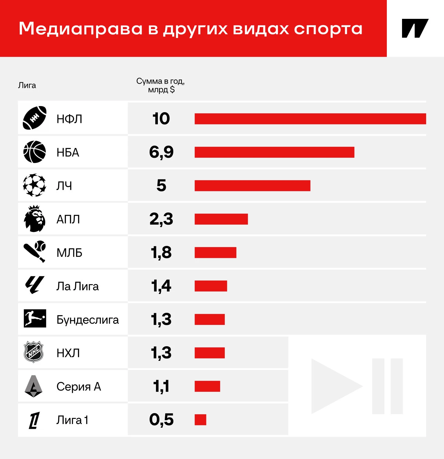 А так – доходы от продажи медиаправ в ведущих лигах других видов спорта:
