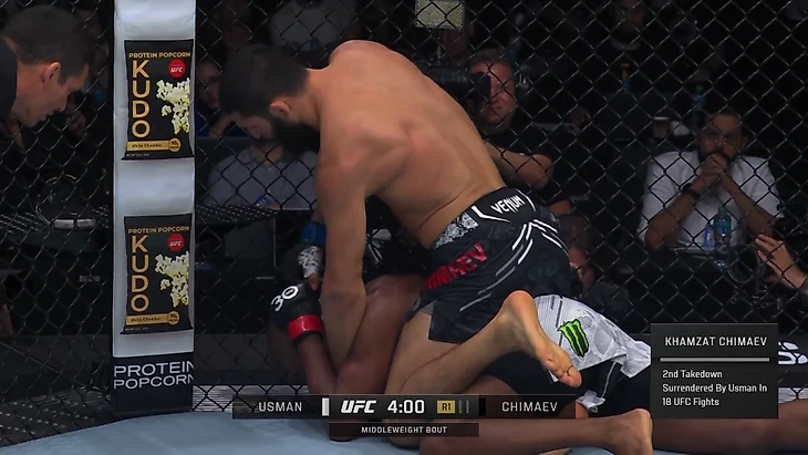 Представим, вы – Камару Усман, топовый ММА-борец, до поединка с Чимаевым пропустивший всего один тейкдаун. Вы отбросили ноги назад и не дали ему моментально перевести вас в партер: