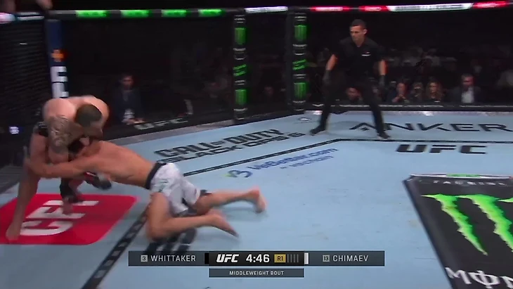 Уиттакер сбрасывает Чимаева со спины и возвращается на ноги