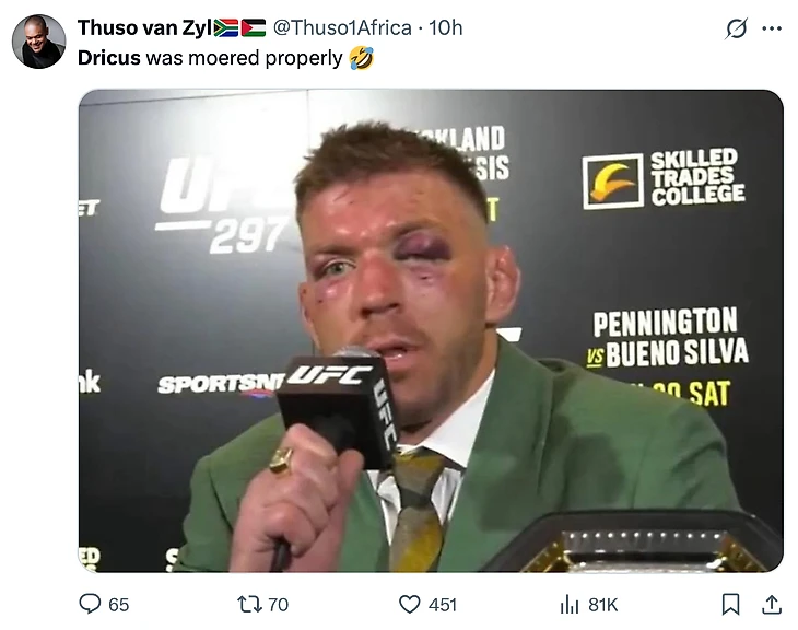 «Я рад, что гуманист избил расиста». Дю Плесси – самый одинокий боец UFC. Его поражением наслаждаются даже на родине 😭