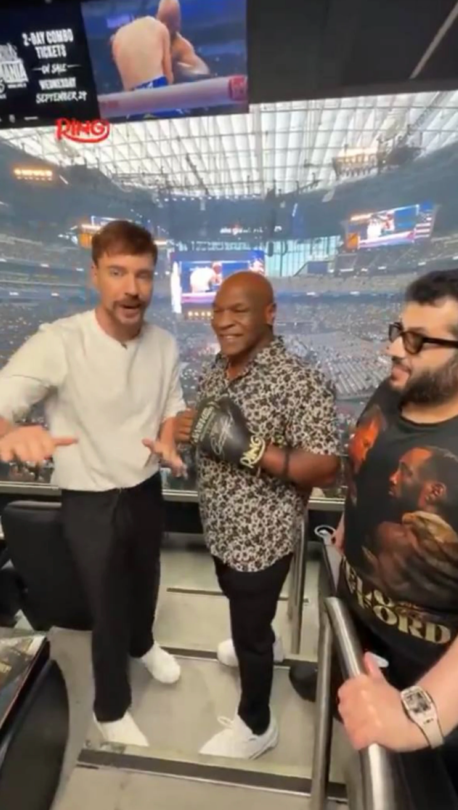 Мистер Бист развлекает зрителей вместе с Майком Тайсоном, получив от легенды по корпусу. А Джейсон Стэтхэм наблюдает за боями в компании Турки Аль эш-Шейха