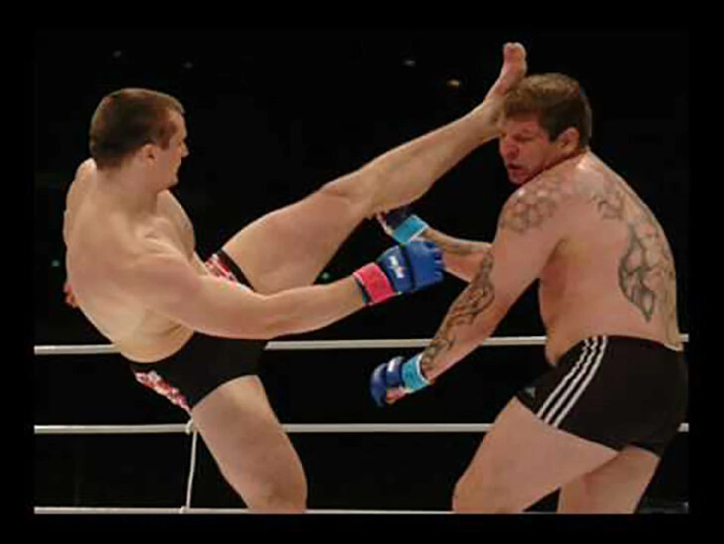 В 2004-м КроКоп возвращал позиции в тяжелом весе после двух неудачных поединков против Ногейры и Рэндлмана. Спустя всего месяц после победы над Сюнго Оямой он вышел на ринг против Емельяненко – правда, не Федора, а Александра. Тот неплохо начал поединок, но потом потерял концентрацию и пропустил похоронный удар левой ногой в голову – моментальный нокаут.