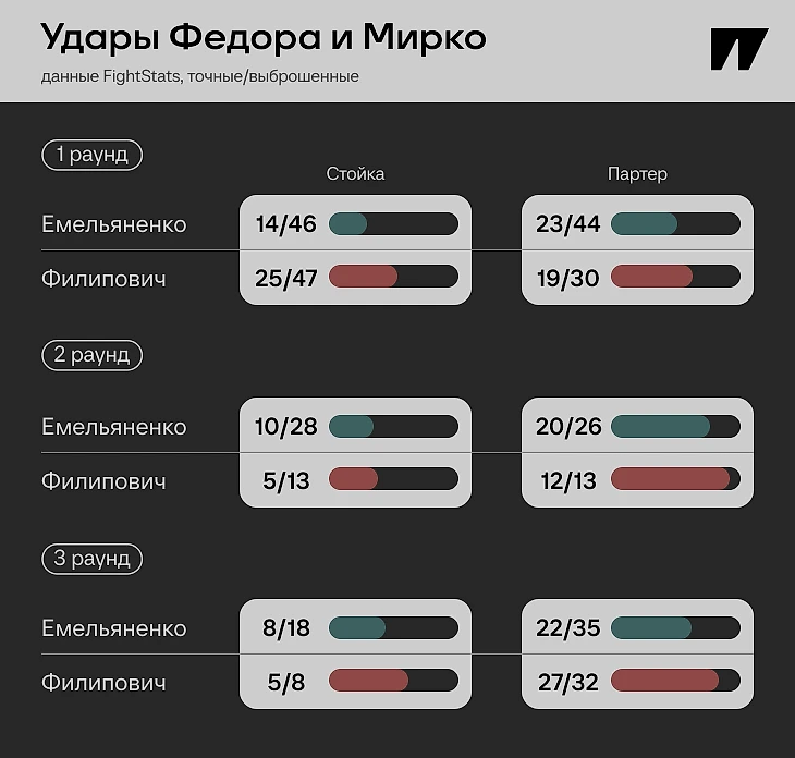 Третий раунд получился самым односторонним. Показательные цифры от FightStats: