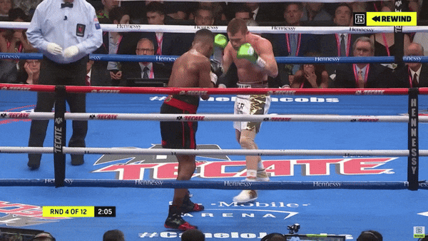 Канело не растерял способности отводить голову назад с последующим ответным правым апперкотом – одна из главных фишек. И на средней дистанции у Альвареса неплохо проходят встречные удары. Для этого нужно вытягивать соперника на себя.