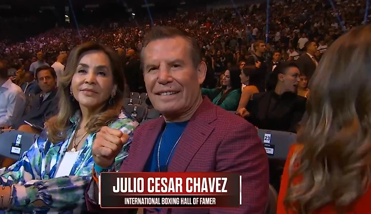 Легендарный мексиканский боксер Хулио Сезар Чавес, конечно, пришел поддержать Канело: