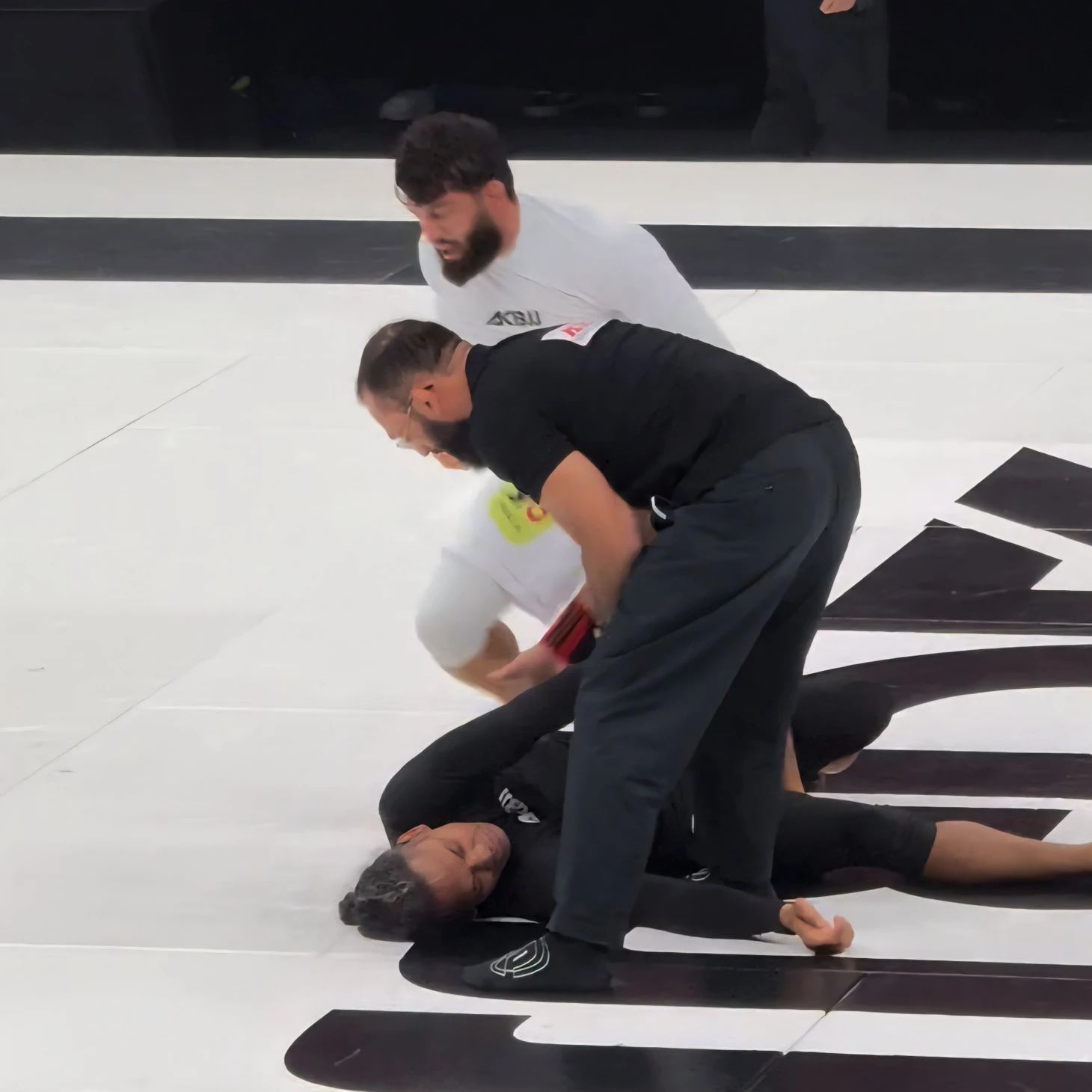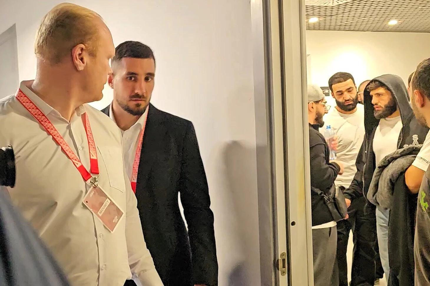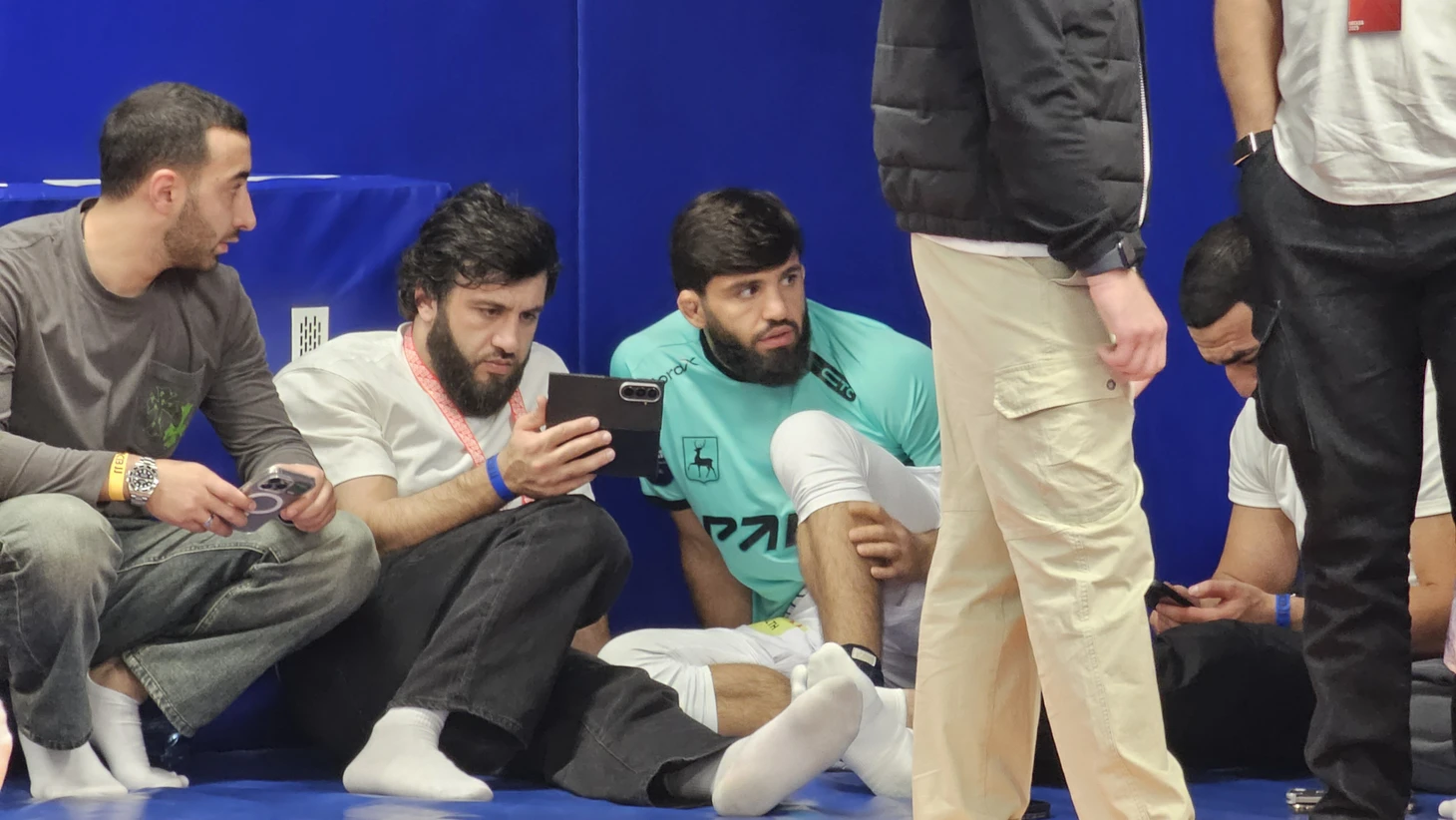 Обычно бойцов вызывают из их раздевалок сильно заранее и какое-то время просят провести буквально в шаге от того места, где уже начинается выход на ковер или в клетку. Как правило, из этого места уже видны другие поединки. В этот раз Арман и Бенсон могли увидеть, как Али Багов и Бабули Цолоев сумели дотолкаться до двойной дисквалификации за пассивность. Шок! Потом Шамиль Никаев пропустил жесткий удар в корпус от Александра Хоронженко, оступился, выйдя за пределы помоста, и получил травму колена.