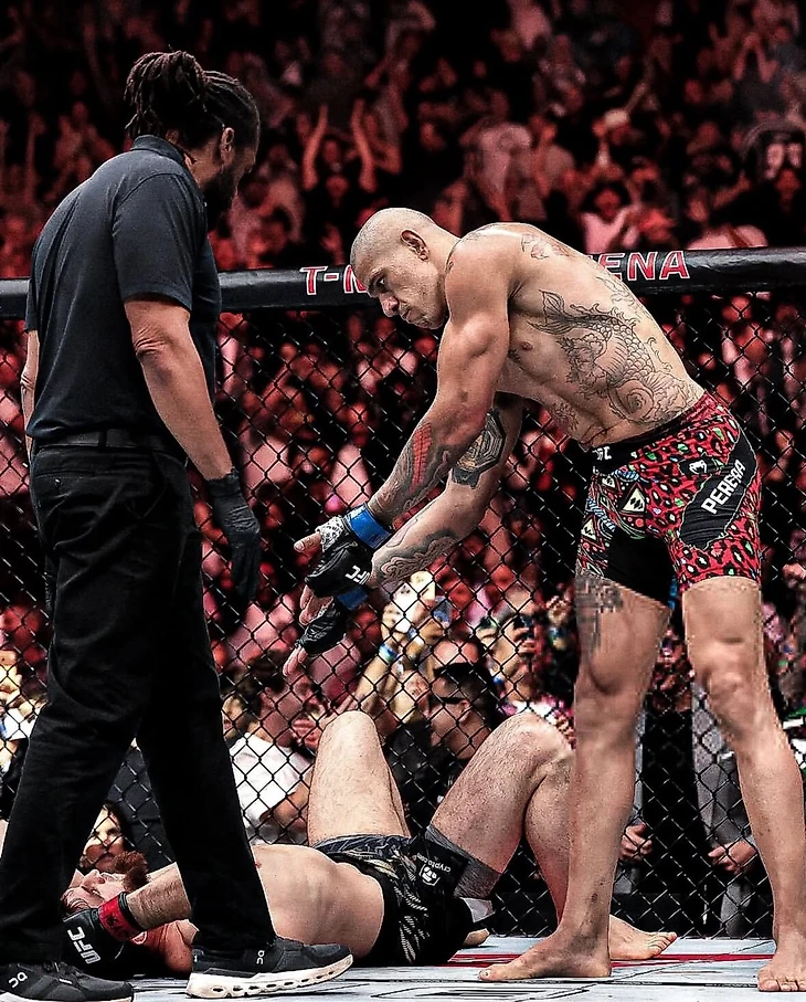 Точно так же Перейра праздновал, когда нокаутировал Джамала Хилла на UFC 300. Хилл перед боем тоже разжигал и говорил, что «изуродует лицо» соперника. А на стердаун взял с собой куклу, с которой фотографировался Перейра.