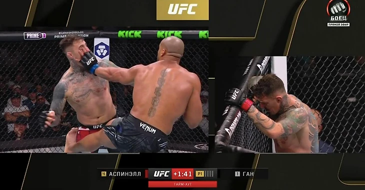 Ган попал Аспиналлу пальцами в глаза – после паузы и консультации с врачом рефери остановил поединок.