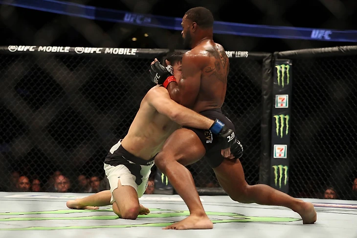 Идеальный пример бесконтактного боя. Это был реванш с финала сезона TUF. После нескольких громких побед, Эспарза таки добралась до титульника. Казалось, девушки покажут достойный бой, но нет. Вместо этого они продемонстрировали, возможно, худший бой, являющийся достойным конкурентов суперсхватке Нганну и Льюиса. Описать то, что происходило в октагоне можно одним словом – ничего. Впрочем, Эспарза сделала чуть больше, за счет чего и забрала титул.