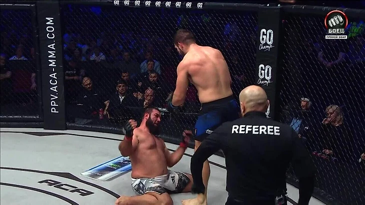 Две недели назад российская MMA общественность бурлила от возмущения после боя Александра Волкова и Жаилтона Алмейды. Тогда Александр три раунда пролежал под бразильским грэпплером и заслужил победу. Судейское решение по больше части вызвало в России одобрение. Главный бой ACA 195 подарил всем диванным экспертам, ломавшим копья в спорах о том, кому отдавать победу, когда боец не хочет драться и не даёт другому, ещё один повод для размышлений. Если, когда-нибудь в UFC надумают показательно наказать Александра Волкова, то они отправят его в тяжелый вес ACA. Место обитания борцов, место, где во главе угла контроль в партере, персональный ад для ударников. Проходи бой Алихан Вахаев - Кирилл Корнилов в UFC, то к третьему раунду в клетку бы выскочил Дэйна Уайт с криком души «вы чё, нас за пацанов держите?», а возможно и с заряженным кольтом (ведь, как известно добрым словом и револьвером вы можете добиться большего, чем просто добрым словом). Душа поэта президента не выдержала бы душераздирающего зрелища, когда один боец лежит на другом и похлопывает того по попе (буквально!). К Алихану Вахаеву нет претензий. Он делает то, что умеет. ТЭЙКДАУНЫ. Но пятый раунд чемпионского противостояния, когда Вахает всю пятиминутку провёл в позе буквы «Г», уткнувшись оппоненту в живот, это приговор тяжелому дивизиону ACA. По сути бой содержание боя превратилось в ту самую букву.