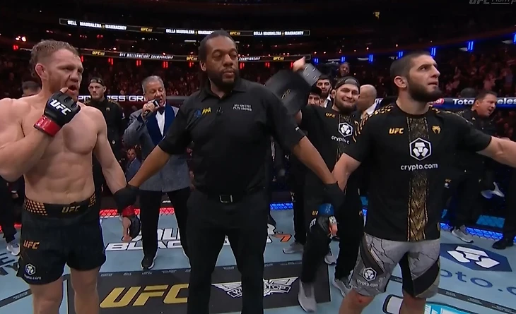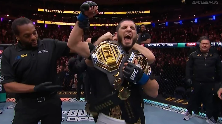 Историческое событие в Нью-Йорке: Ислам Махачев стал первым бойцом из России, который взял пояса UFC в двух дивизионах. Махачев победил чемпиона полусреднего веса Джека Делла Маддалену единогласным решением судей – доминировал весь бой в партере.