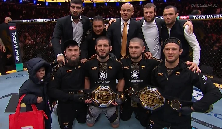 Хабиб отобрал пояса у Уайта, а Хасбик вышел в октагон с шопером – веселье после триумфа Махачева