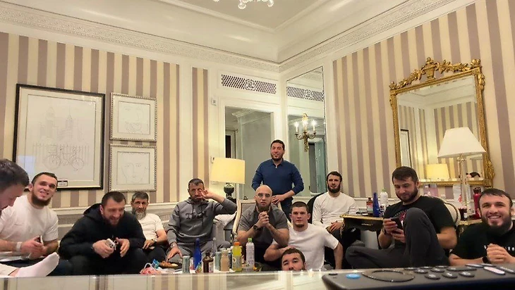 Дэниса вывели с арены, как и наиболее активных участников драки из команды Хабиба. «На фотке не все. Потому что с арены выгнали человек 50», – подписал Хабиб победное фото с командой из клетки. За триумфом Махачева «человек 50» наблюдали уже из отеля: