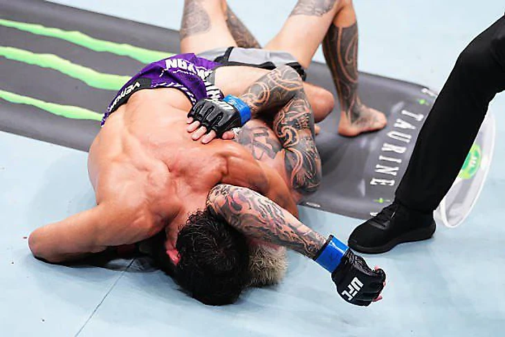 По данным Stats Fight, Арман за 3.5 минуты перестрелял Дэна со счетом 34-5 по акцентированным ударам. А уже после тотального избиения, выдавив из новозеландца все соки, Царукян поймал оппонента на ручной треугольник, после которого тот постучал. Как итог – яркая победа “Ахалкалакца” сабмишеном во втором раунде!