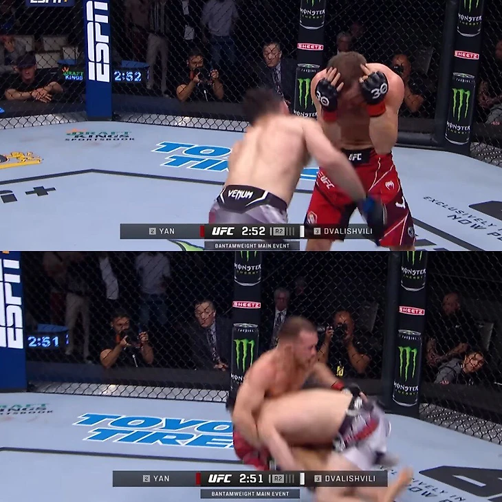Cмущает, что Ян много пропускает – во всех трех боях его потрясли, а Фигейредо отправил в нокдаун. Ян всегда пропускал из-за любви к высокому блоку, но теперь это происходит особенно часто. Ян привык к такой защите еще в любительском боксе, но против Мераба это скорее минус. Яну часто хватает ловкости и рефлексов, чтобы отзащищаться, но высокий блок открывает его для тейкдауна, чем Мераб охотно пользовался.