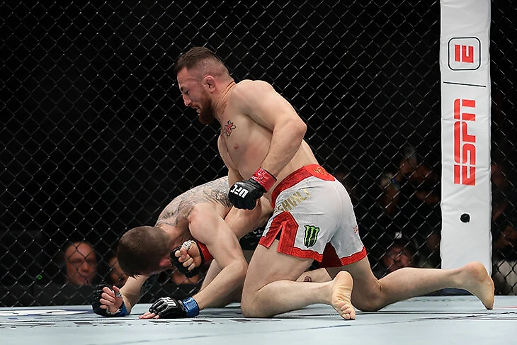 Хотя Ян старался прятать правую руку даже в борьбе, он показал хорошую защиту от тейкдаунов. Мераб приучил, что спамит проходами, но против Яна они плохо работали. Да, как и всегда, Мераб измотал соперника постоянными нырками в ноги, но не смог заставить Яна бояться его тейкдаунов.