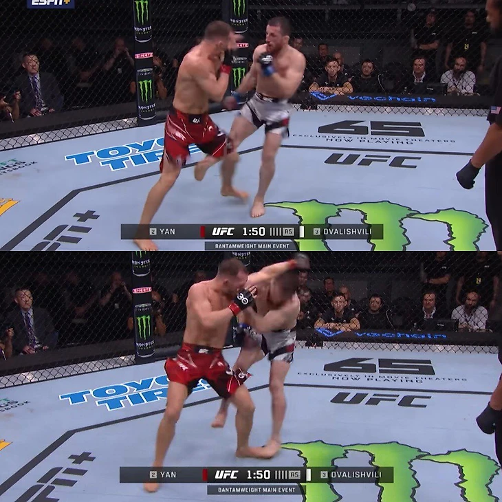 Бой с Дейвисоном Фигейредо (ноябрь 2024-го): в первом раунде соперник прессинговал, успешно перевел, недолго контролировал Яна в партере. Яну снова помог апперкот правой – в третьем раунде он оформил им нокдаун. После этого Фигейредо стал аккуратнее, больше пропускал и в итоге отдал все пять раундов.