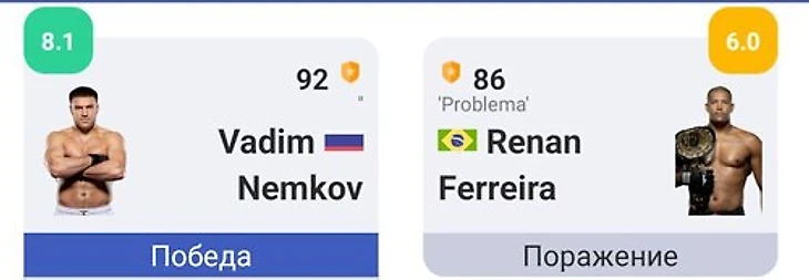 Алгоритм Stats Fight Performance по достоинству оценил победу Вадима Немкова, который получил рейтинг 8.1 за минувший поединок. Что касается Ренана Феррейры, то он достиг скромной оценки 6.0 за свое выступление.