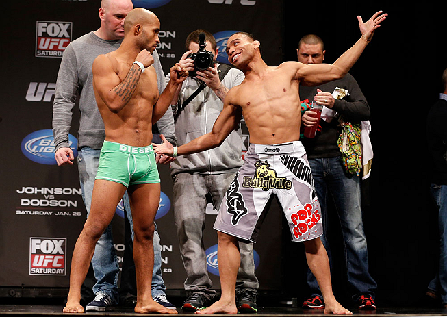 И хотя Деметриус будет ожидать от Джона попыток его нокаутировать, делать ему надо будет как раз то, что него ждут. Получить победу по очкам с бегунком Джонсоном Додсону будет сложно, придется чемпиона вырубать. Остроты бою прибавляет и то, что мало кто верит в победу Додсона. Для американских журналистов стиль Джонсона с его блестящими борцовскими навыками, непрекращающимся броуновским движением в октагоне и зачаточной ударной техникой стал синонимом всего хорошего. Джо Роган нахваливал технику чемпиона, ставя его в пример молодым бойцам. На хорошем американском сайте по ММА Bloodyelbow десять экспертов из десяти прогнозируют победу Джонсона: он дескать слишком умен, да и попасть в него сложно.