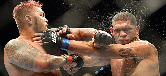 В этом году отгремели такие эпичные супербои как Джонс–Густафссон, Мелендес–Санчеc и Сен-Пьер–Хендрикс. Казалось, что если нас и ждёт ещё что-то подобное, то это будет реванш Андерсона Силвы и Криса Уайдмана. От главного поединка шоу в Брисбене, разумеется, ждали интриги, но мало кто мог предположить, что нас ждёт буквально исторический матч, после которого все пребывали в экстазе от увиденного. Это была просто бомба, иначе не скажешь! Чтобы станцевать танго, нужны двое, и на этот раз это были два тяжа, которые выложились по максимуму и даже больше, заставив зрителей взорваться аплодисментами. Ради подобных сражений вообще стоит смотреть ММА, так как в противостоянии Марка Ханта и Антонио Силвы было столько динамики, ярости и проявления морально-волевых качеств, что хотелось смотреть не только 5, но и 6, и 10 раундов! Такой фантастический матч великолепно бы украсил любой номерной турнир UFC, не говоря уже о шоу UFC Fight Night. Мы не будем сейчас перечислять каждое движение этих огромных и мощных парней, так как подобные «блокбастеры» непременно нужно видеть своими глазами, но ряд наиболее интересных деталей всё же отметим.