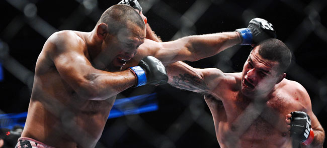 Затем был Густафссон, который набрал ход и летит вперёд на всех парусах. Благодаря атлетизму и разносторонней подготовке швед смог взять верх единогласным решением, хотя Маурисио выглядел достойно и часто попадал в цель. Но крепкая челюсть выручала Александра. Перед встречей с Сонненом понятно было, что последний будет валить вниз изо всех сил. Так и получилось, но неожиданностью стало то, что Руа попал на «гильотину». Всякое бывает, но имея чёрный пояс по джиу-джитсу, Руа, казалось, не допустит подобного. Тем более от Соннена. Рекорд бразильского нокаутёра всё-таки дошёл до 2-2, когда он своим встречным хуком чуть не оторвал голову середняку Джеймсу Те Хуне, который долго приходил в себя в окружении медиков.