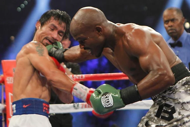 Статья вообще-то должна была быть о бое. Но стартовав с нескучного в целом поединка между Хосе Феликсом и Брайаном Васкесом – костариканского мачо хотели слить, но не получилось – ТВ-андеркард плавно перетек во что-то жидкое и хлюпающее, и к середине мексикано-афганского противостояния (бывает и такое) между Рэем Бельтраном и Арашем Усмани я благополучно заснул. Чтобы проснуться в 3-м раунде схватки между Брэдли и Пакиао.