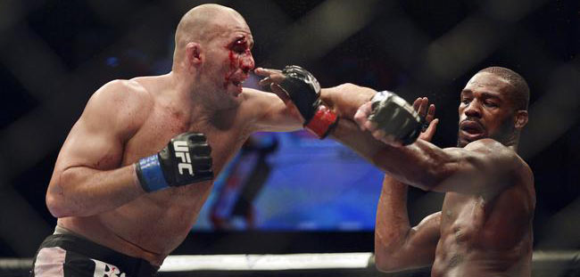 Вообще, конечно, безумие выходить против Джонса, имея в наличии только тяжёлую плюху. Это как бросаться на бронетранспортёр с дубинкой в руках. Джон, видя, что у бразильца ничего не получается, раздухарился и устроил тому бомбёжку у сетки: чередовал апперкоты в голову и корпус с ударами локтем. Выглядело потрясающее, и исполнено было на высочайшем уровне. Локти Джонса, как известно, острые как «бритва». По этой причине вряд ли кого-то удивило рассечение, появившееся над правым глазом его соперника.