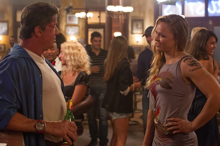 В фильме нашлось место не только бурному экшну, но и задушевному разговору героини Ронды с Барни Россом в исполнении Сильвестра Сталлоне:
