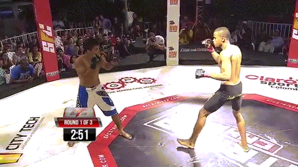 Быстрый, четкий и точный прямой удар ногой (фронт-кик) в исполнении колумбийского бойца Хосе Дель Уолли. Даже аналогичный удар в бою Андерсона Сильвы и Витора Белфорта, который считается едва ли не образцовым исполнением этой техники, несколько блекнет на фоне "выстрела", сделанного этим парнем.
