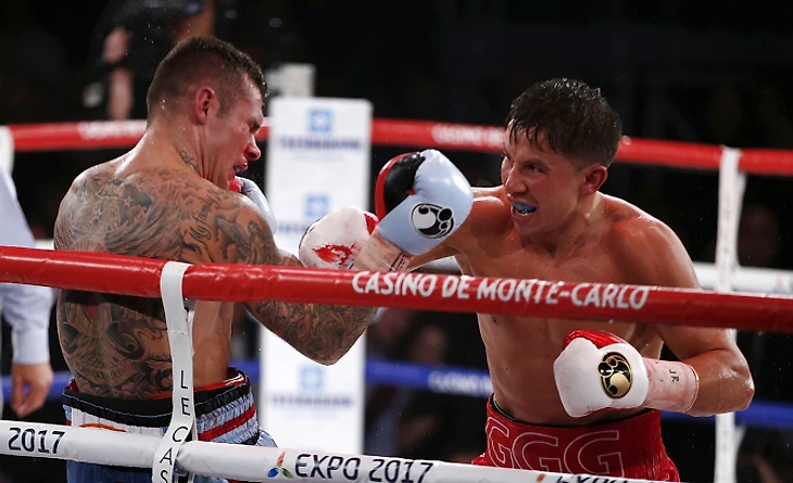 – В интервью Максу Келлерману (HBO Boxing) Головкин сказал после боя: «Чувствую себя прекрасно. Это был мой план – боксировать пять-шесть раундов, устроить шоу для фанатов. А потом нанести кучу ударов и досрочно завершить поединок».