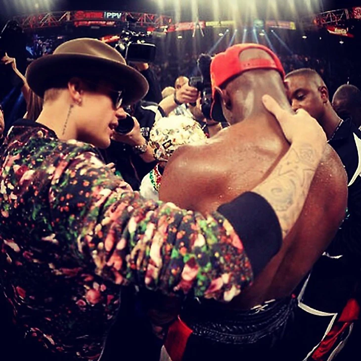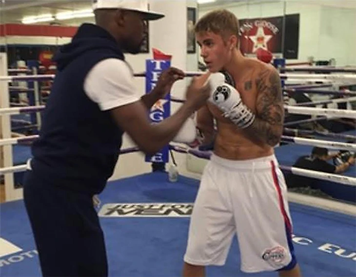 По официальной версии, пару лет назад Бибер увлекся боксом и сам напросился в зал к Флойду, чтобы познакомиться и взять пару уроков кулачного мастерства. Парни подружились, и уже во время боя Мэйвезера с Саулем Альваресом в сентябре 2013 года Джастин стал членом команды американского боксера и одним из первых поздравил его в ринге с победой .