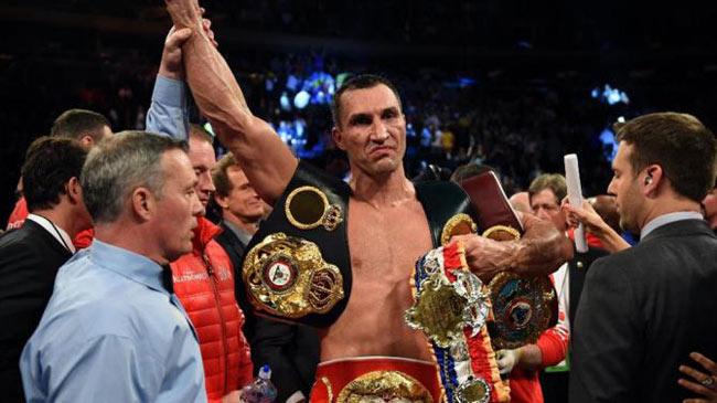 Бой за титулы чемпиона мира по версиям WBO, IBF и IBO, а также "суперчемпиона" мира по версии WBA в супертяжёлом весе (свыше 90,7 кг)