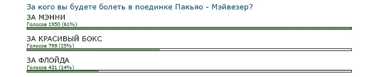 Как и ожидалось: большинство поддерживает Мэнни, но понимает, что шансов на победу больше у Флойда.
