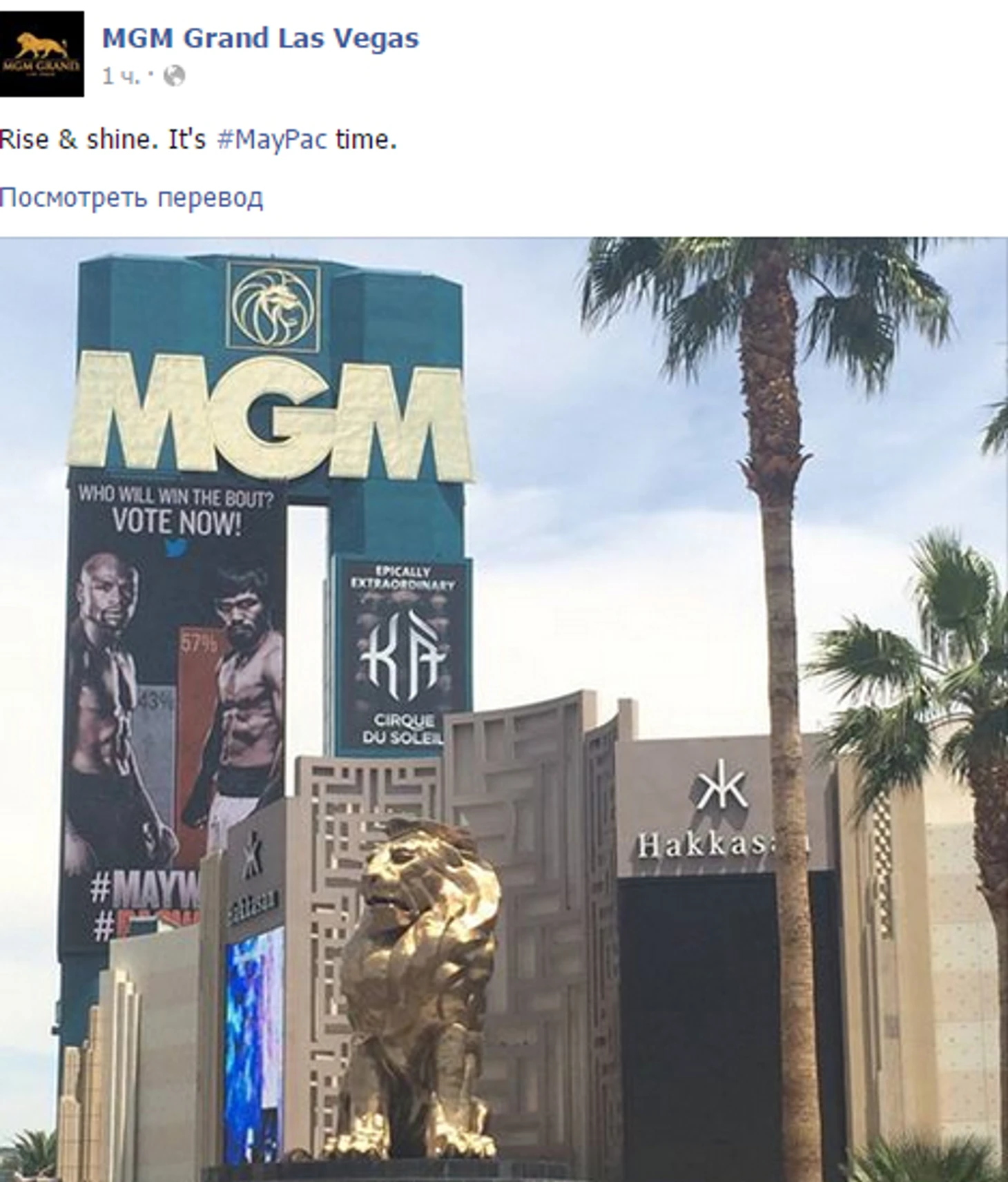 19.20. Ринг, в котором пройдет поединок, установят в развлекательном комплексе MGM Grand (стадион MGM Grand Garden Arena, вмещает 16 800 зрителей).